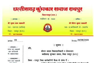 रायपुर : छत्तीसगढ़ कुम्हकार समाज की जिला कार्यकारिणी बैठक 31 अगस्त को…