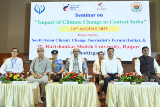 पंडित रविशंकर शुक्ल विश्वविद्यालय में आयोजित जलवायु परिवर्तन संगोष्ठी को संबोधित करते…