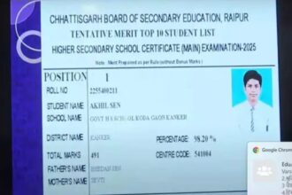 CGBSE 12वीं रिजल्ट 2025: कांकेर के अखिल सेन बने टॉपर, 98.20% अंक,…