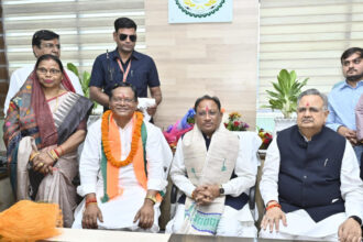 मुख्यमंत्री विष्णु देव साय छत्तीसगढ़ राज्य वन विकास निगम के अध्यक्ष रामसेवक पैकरा के पदभार ग्रहण समारोह में हुए शामिल