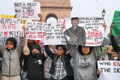 दिल्ली प्रदूषण विरोध में माओवादी हिडमा का पोस्टर, पुलिस पर मिर्च हमला; 15 प्रदर्शनकारी गिरफ्तार