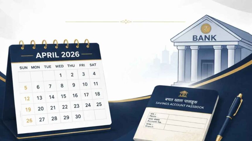 छत्तीसगढ़ में अप्रैल 2026 के दौरान बैंक कई दिनों तक बंद रहेंगे, जिसका असर आम लोगों के बैंकिंग कार्यों पर पड़ सकता है। इस महीने राष्ट्रीय अवकाश, साप्ताहिक छुट्टियां और दूसरे-चौथे शनिवार को मिलाकर करीब 12 से 14 दिन बैंक बंद रहने की संभावना है।