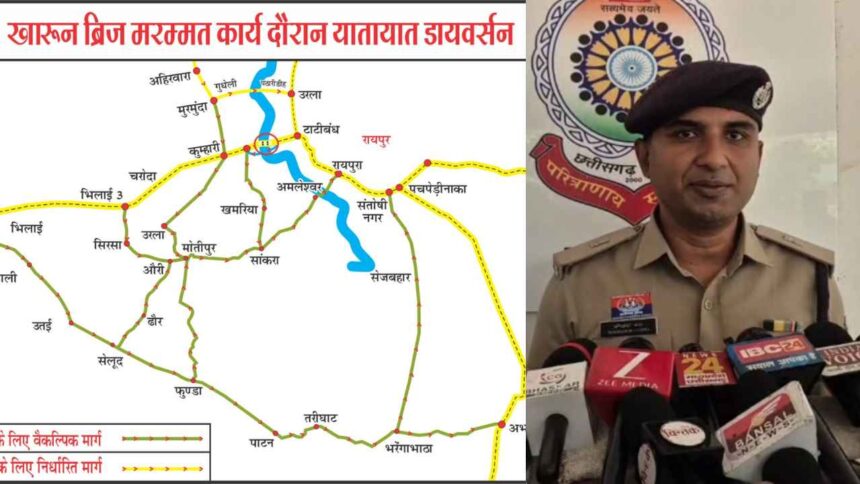 दुर्ग। दुर्ग और रायपुर को जोड़ने वाले कुम्हारी स्थित खारुन नदी ब्रिज को मरम्मत कार्य के चलते एक महीने के लिए बंद किया जाएगा। यह प्रतिबंध 1 अप्रैल से 30 अप्रैल 2026 तक लागू रहेगा। इस दौरान यातायात व्यवस्था बनाए रखने के लिए दुर्ग पुलिस ने विस्तृत डायवर्जन प्लान तैयार किया है।