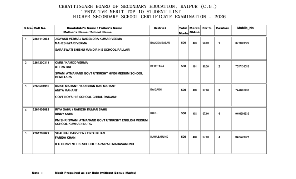 CGBSE Result 2026: 12वीं बोर्ड के रिजल्ट में जिज्ञासू वर्मा ने प्रदेश में किया टॉप