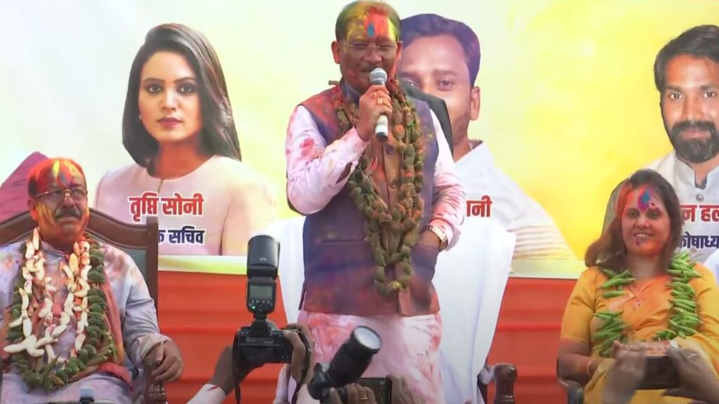 इस खास मौके पर सीएम विष्णुदेव साय ने नगाड़ा बजाकर समा बांध दिया, वहीं विधायक अनुज शर्मा ने फाग गीत गाकर रंग जमा दिया। नगाड़े की धुन पर मुख्यमंत्री, डिप्टी सीएम और पत्रकारों ने जमकर डांस किया और एक-दूसरे को रंग गुलाल लगाकर बधाइयां दीं।