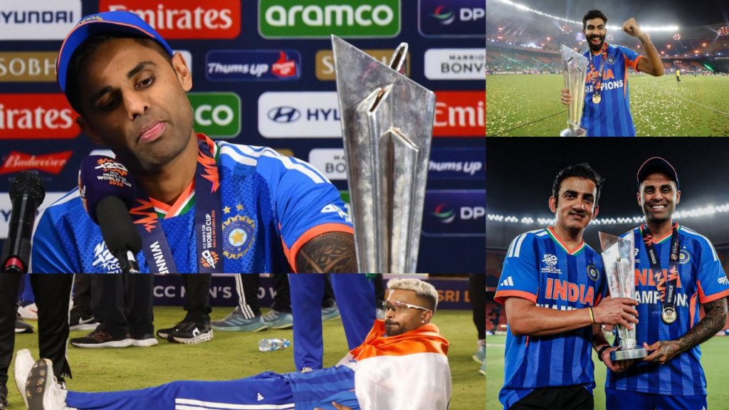 जीत के बाद टीम इंडिया के खिलाड़ियों ने ट्रॉफी के साथ कई यादगार तस्वीरें खिंचवाईं। जसप्रीत बुमराह, सूर्यकुमार यादव, तिलक वर्मा और ईशान किशन समेत कई खिलाड़ियों ने स्टेडियम में पोज देते हुए अपनी खुशी जाहिर की।
