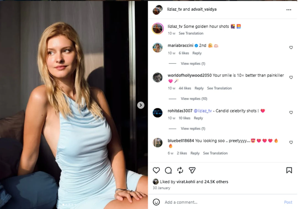 अब सामने आए नए मामले में दावा किया जा रहा है कि विराट ने जर्मन कंटेंट क्रिएटर Lizlaz की एक पुरानी पोस्ट को लाइक किया है। बताया जा रहा है कि यह पोस्ट 30 जनवरी की है और लाइक उस पर दिखाई दिया, जबकि विराट उन्हें फॉलो भी नहीं करते। इसके बाद सोशल मीडिया पर मीम्स और प्रतिक्रियाओं की बाढ़ आ गई।